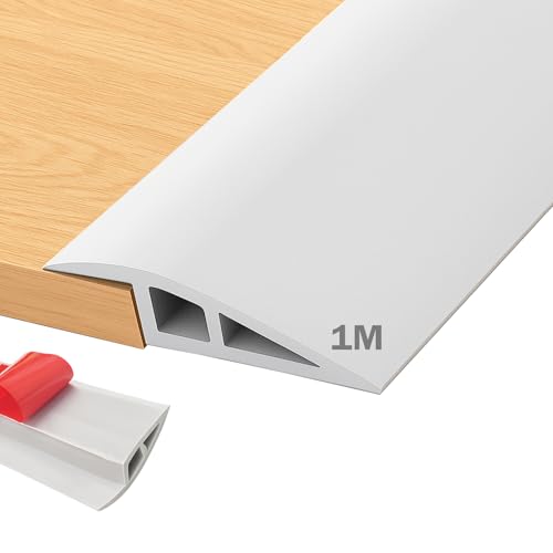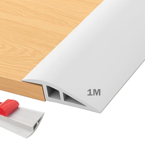 Dörrtrösklar list, PVC övergångsprofil självhäftande 1 m x 5 cm, höjdskillnader 10 mm övergångslist golv, tröskelramp, övergångsskena, självhäftande, övergångsprofil laminat (vit)
