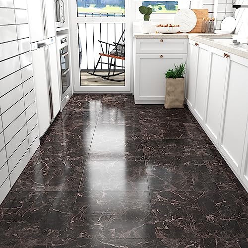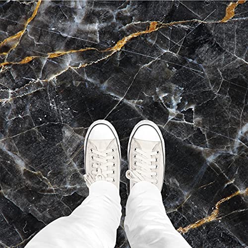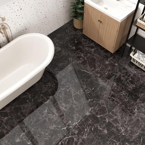 Yullpaper Vinylgolv självhäftande kakeloptik laminat PVC golvbeläggning självhäftande kakel ljus svart marmor 24 stycken golvplattor klistermärken vattentät svart kakeldekaler för badrum kök golv