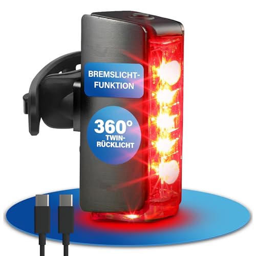 Fischer Twin cykelljusset, 360° golvbelysning, LED-cykellampa 80 lux, batteri uppladdningsbar med USB C, kan monteras fram och bak