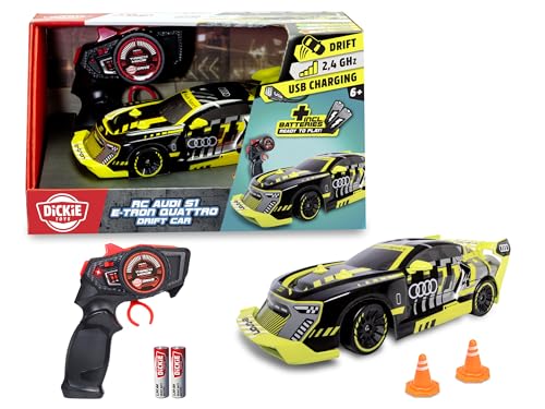 Dickie Toys – RC Audi S1 E-Tron Quattro Drift Car 1:24 – 2,4 GHz, 4 WD, driftfunktion, LED-golvbelysning – USB-laddning – RTR fjärrstyrd bil