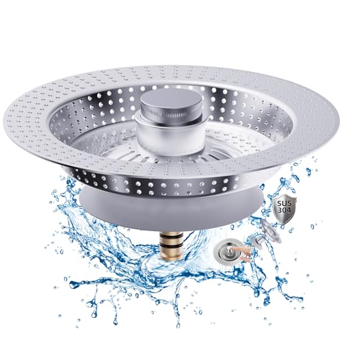 Dräneringsplugg och dräneringssil kökshandfat, 3-i-1 popup golvbrunnsfilter av rostfritt stål för avlopp, idealiska skydd för diskbänken silver