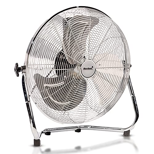H.Koenig JOE32 tyst golvfläkt, kromad metalldesign, 45 cm, hög hastighet, slitstark, 3 ventilationshastigheter, lutande huvud, hem/kontor/garage, halkfria fötter, kraftfull 100 W