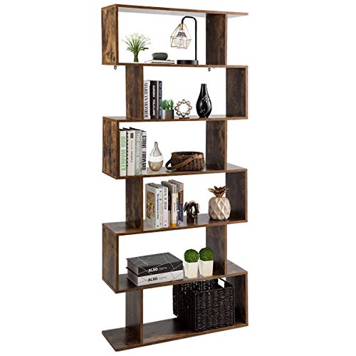 Costway Bokhylla, golvhylla med 6 plan, kontorshylla i trä, dokumenthylla, 192 x 80 x 23 cm, förvaringshylla inkl. fästmaterial, rumsavdelare för vardagsrum, sovrum och kontor (brun)