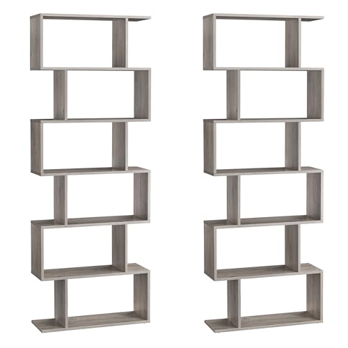 Vasagle LSS038M01 Bokhylla, hylla med 6 plan, golvhylla, kontorshylla, fristående, dekorativ hylla, för presentation, modern, för vardagsrum, sovrum, kontor, greige, set med 2
