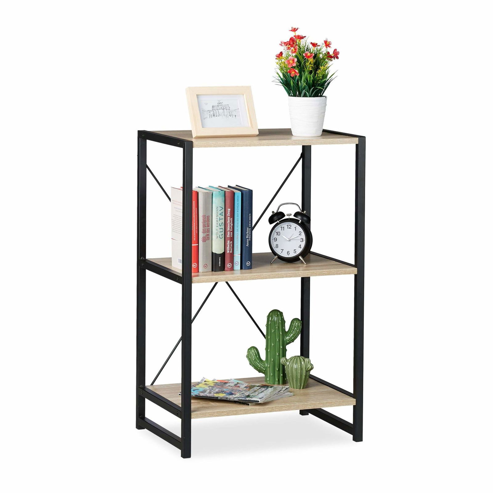 BAKAJI Bokhylla Segelhylla 3 hyllor skåp dokumentlagring Kontor Böcker Bibliotek Skåp Hyllor Golvhylla Vardagsrum Vardagsrum Trästruktur MDF (Ek)