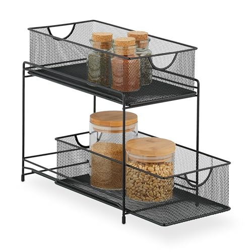 Relaxdays Kök, 2 utdragskorgar, golvhylla av metall, H x B x D: 32 x 19 x 35,5 cm, badrumsorganisatör, svart