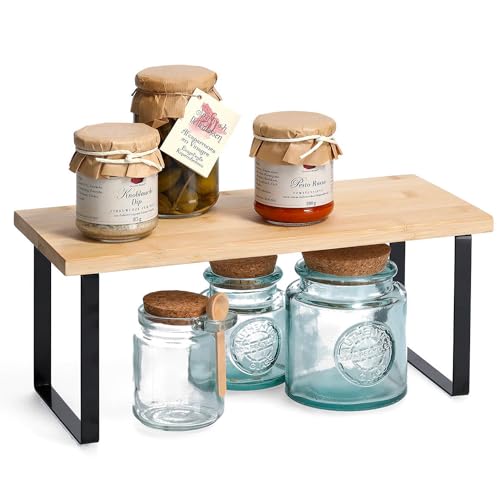 Avilia Bambuhylla | Hylla för vardagsrum | Golvhylla av trä och metall | Kökshylla i trä | Bambu- och metallförvaringshylla, brun och svart, 36 x 15,5 x 15,5 cm
