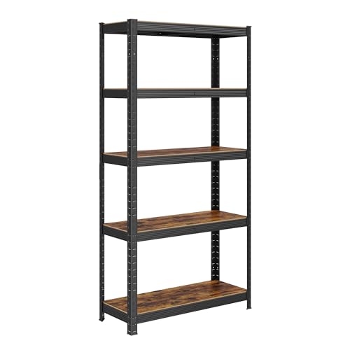 SONGMICS Golvhylla, bokhylla, förvaringshylla, 5 hyllor, kökshylla, hylla, 150 x 75 x 30 cm, lastbar upp till 650 kg, justerbara hyllor, industriell stil, svart-vintagebrun GLR030B01