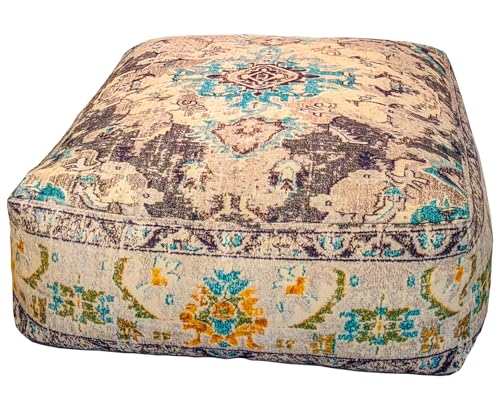 Bohemian Rug Golvkudde - Endast fyrkantigt överdrag 60 x 20 cm - Lyxig hantverksrumsdekoration sittsäck för meditation yoga och boho chic golv kuddfodral