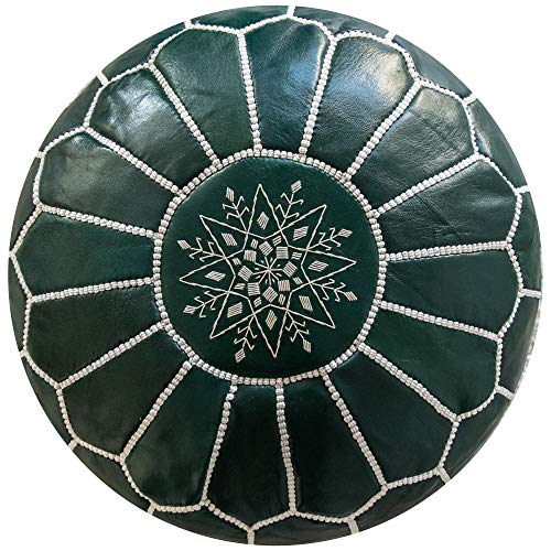 Poufs & Pillows: Premium Handgjord Läderpuff – Handgjord, Levererad Fylld – Ottoman, Fotpall, Golvkudde (Grön)