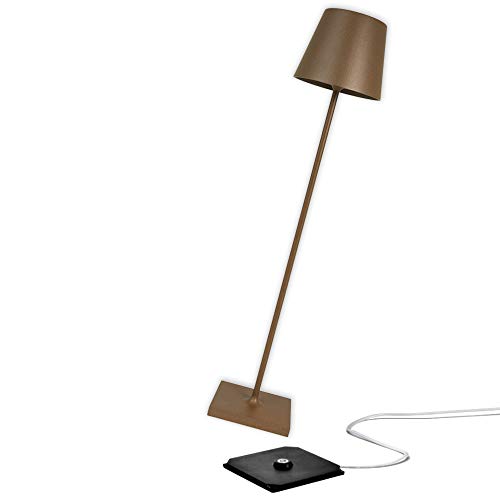 Zafferano, Poldina XXL-Lampa, Uppladdningsbar Sladdlös Golvlampa Med Touchkontroller, Lämplig för Interiör och Utomhusbruk, Dimmer, 2700-3000 K, Justerbar Höjd 69-150 CM,Färg Corten