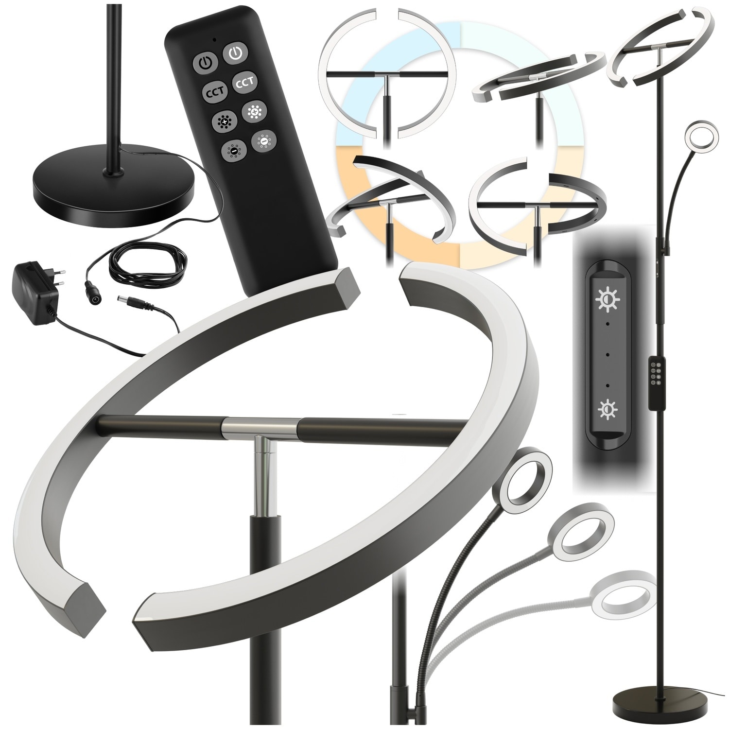 tectake Golvlampa Auralis LED 20W, läslampa med dimmer - svart