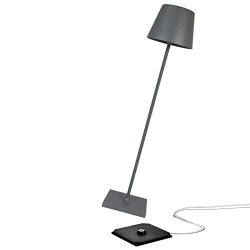 Zafferano, Poldina L-lampa, Uppladdningsbar Sladdlös Golvlampa med Touchkontroller, Lämplig för Inomhus och Utomhus Bruk, Dimmer, 2200-3000 K, Justerbar Höjd 52-122 CM, Mörkgrå-Färg