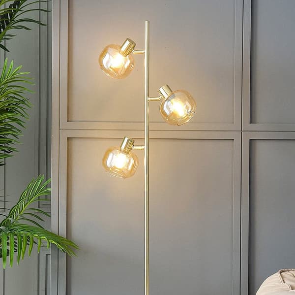 Golvlampa guld med amberglas 3-ljus - Jesse