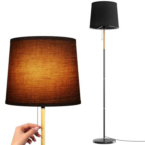 Golvlampa linne lampskärm, E27 lampfot, max 60W, vardagsrum golvlampa, tyg skärm design, 170cm höjd för vardagsrum, sovrum, arbetsrum, kontor, utan glödlampa (MTS-001-Zwart)