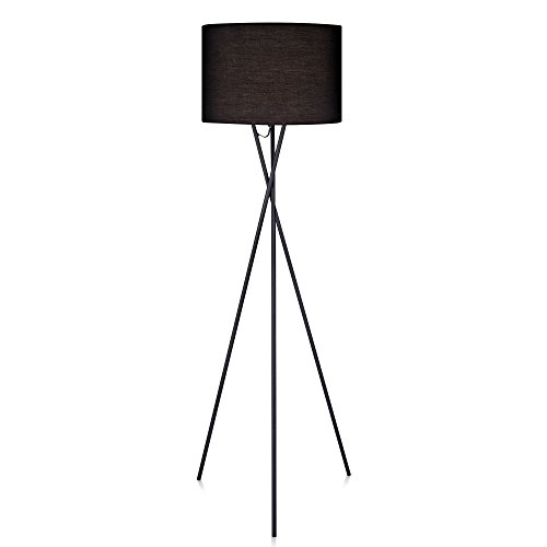 Golvlampa, modern golvlampa med fotkontakt, skärm med linnelook, golvlampa för vardagsrum, sovrum, exkl. glödlampa, svart