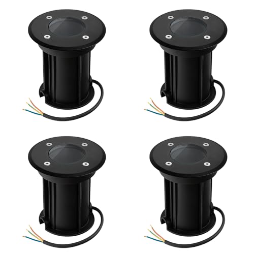 URing Utomhus infälld golvlampa för GU10, IP67 vattentät LED-spotlight utomhusterrass rund och praktisk golvlampa för utomhusbruk, 230 V rund golvlampa för gräsmatta, gård, Ø11 x 12 cm, svart