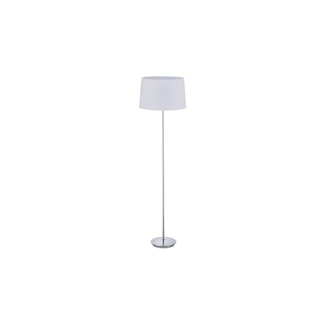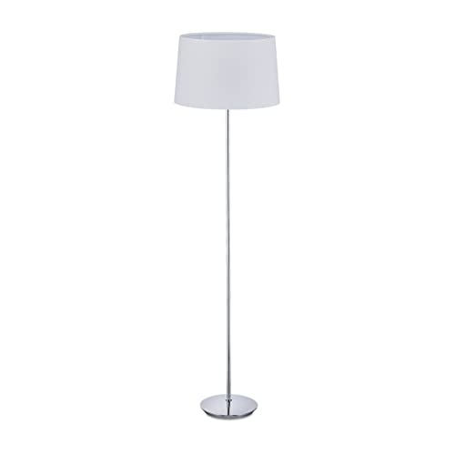 Relaxdays Golvlampa med tygskärm, förkromad fot, E27-fattning, Ø 40 cm, vardagsrum, golvlampa 148,5 cm hög, vit