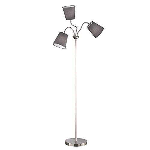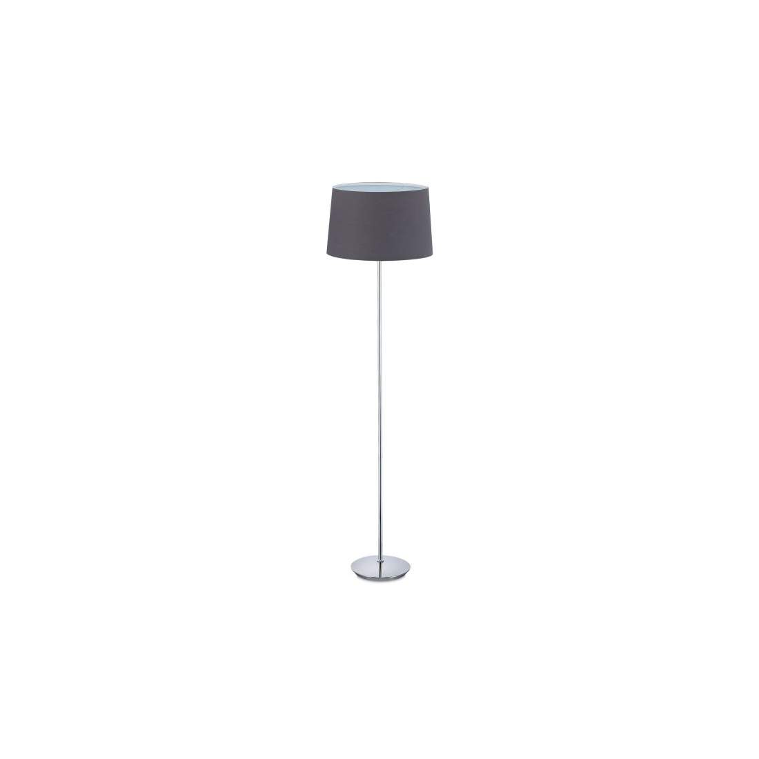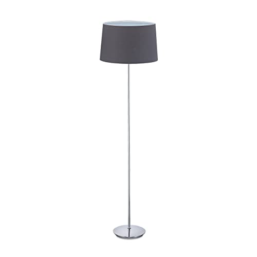 Relaxdays Golvlampa med tygskärm, förkromad fot, E27-fattning, Ø 40 cm, vardagsrum, golvlampa 148,5 cm hög, grå