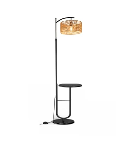 LuminexDesigns Golvlampa med E27-uttag, höjd 165 cm, sidobord med USB- och typ-C-portar, tygskärm Ø33 cm, fotströmbrytare, idealisk för vardagsrum och sovrum