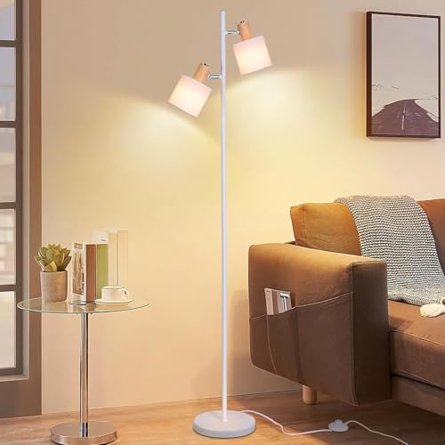 CBJKTX golvlampa vardagsrum golvlampa vintage - 145cm 2 flammor E14 golvlampa vit tygskärm med fotbrytare retro industriellt tyg vardagsrumslampa roterbar sovrumslampa (utan glödlampa)
