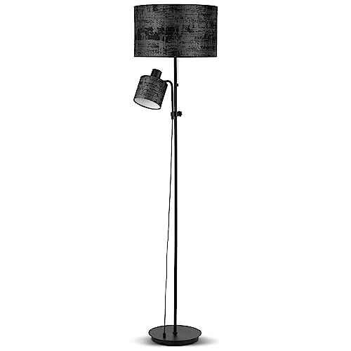 REV – Golvlampa, 2 lampor, vintage med stegbrytare, golvlampa vardagsrum med sammet, tygskärm och E27-sockel – lä, golvlampa, svart som dekoration för vardagsrum och sovrum