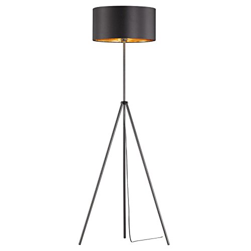 Reality Leuchten Golvlampa Daniel R40271032, metall svart matt, tygskärm svart/guld, exkl. 1x E27