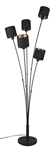 Reality Leuchten Golvlampa Tommy R46335979, metall svart matt, tygskärm svart, guld, exklusiv 5x E14