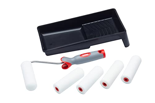ProDec 7-delat skum 10 cm minirullar, mjuk greppram och bricka set för en slät finish med glans och satinfärger på golvlister, fönsterbrädor, paneldörrar, skåp, metall med mera. 10 cm