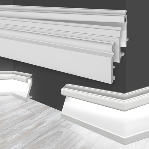 MARBET DESIGN LED-golvlister vit HDPS plast - 2 meter golvlister profil indirekt belysning golvlister slutlister golv lister (HF-3 109 x 22 mm, 10 meter)
