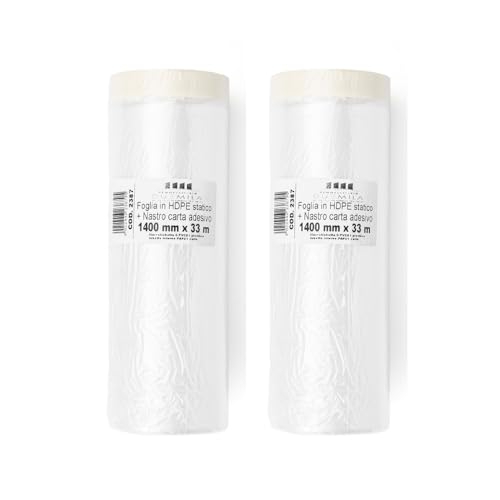 PENNELLIFICIO 2000 | 2 rullar av polyeten med tejp, täckset, väggskydd, väggar, golvlister, möbler, täckpresenning, storlek 140 cm x 33 m – Tillverkad i Italien
