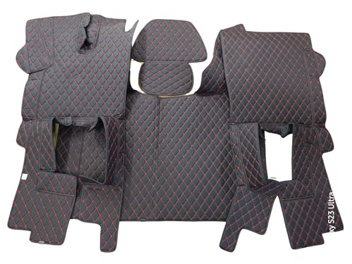 KRAM-TRUCK DAF XF106 17-21 golvmattor - gummimattor bil - 2-delad uppsättning bilmattor - DAF bilmattor (svart med röd tråd)