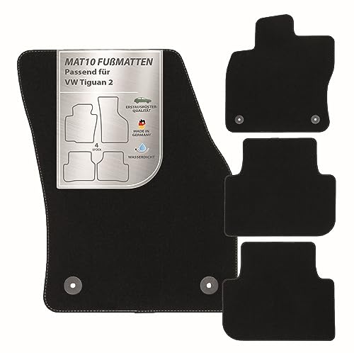MAT10 000019SV002 VW Tiguan II Från Tillverkningsår 2016-01 Bil Golvmattor Bilmatta, Velour Premium Kvalitet 4-delar, Svart Garanterad Passform