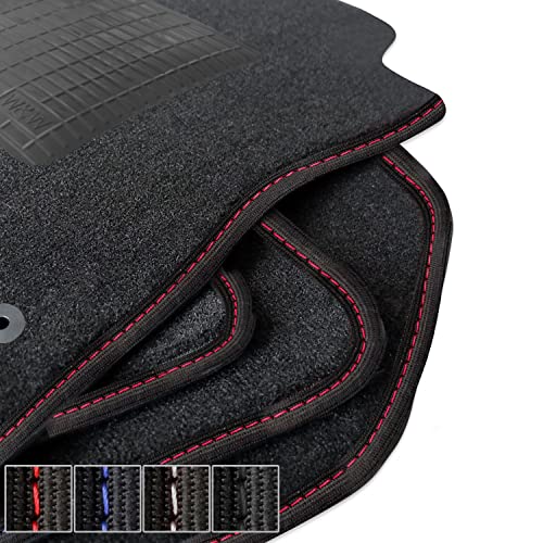 moto-Mounco golvmattor bil – velour bilmattor lämpliga för Volvo S60 I V70 XC70 (2000–2008) – set om 4 – svarta bilmattor med röda dekorativa sömmar