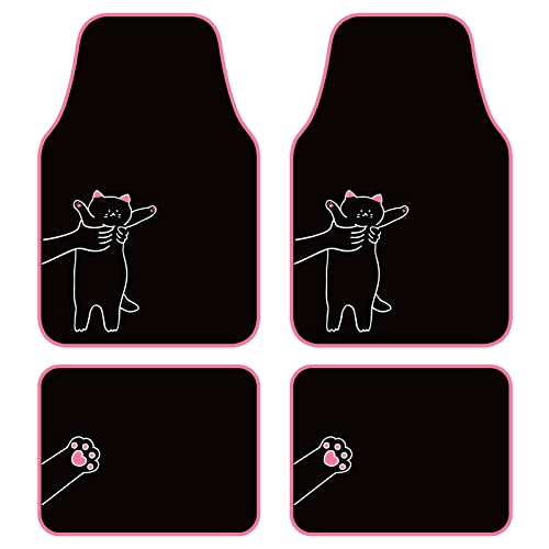 Augusti Auto universell passform söt kattmatta bil golvmattor, passar för sedan, SUV:ar, lastbil, skåpbilar, set med 4 (rosa)