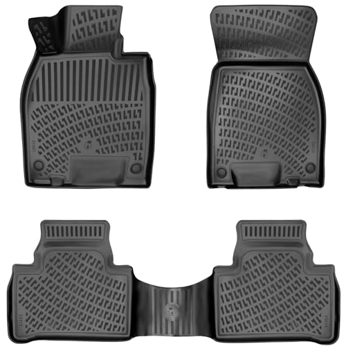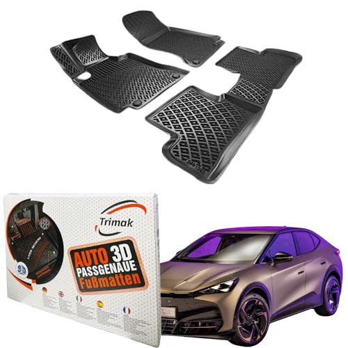 Trimak Perfekt passform 3D-golvmattor för bil, kompatibel med Cupra Tavascan Elektro sedan 2023, biltillbehör 1:a och 2:a Gummimattor bilar TPE allväder luktfri halkfri fram och bak svart