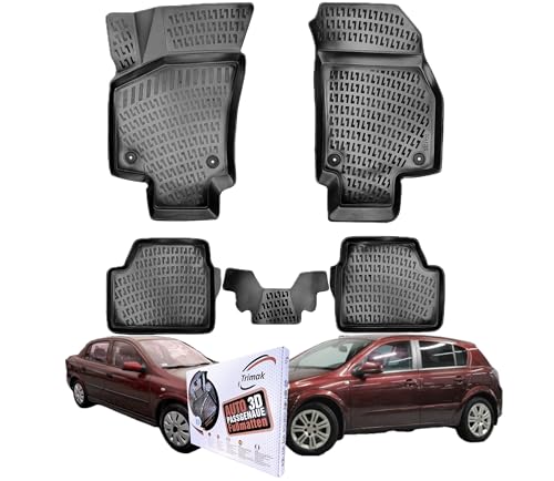 Trimak Perfekt passform 3D-golvmattor för bil, kompatibel med Opel Astra G & H 1998–2010, biltillbehör 1. Och 2. Gummimattor bilar TPE allväder luktfri halkfri fram och bak svart