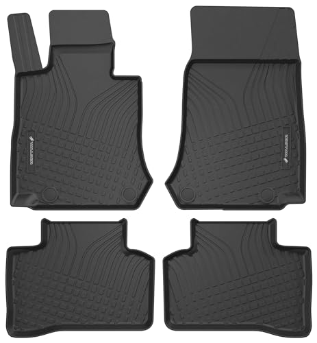 Rizline Perfekt passform 3D-golvmattor bil kompatibel med Mercedes E klass W213 2016–2022 biltillbehör 1:a och 2. Gummimattor bilar TPE allväder luktfri halkfri fram och bak svart