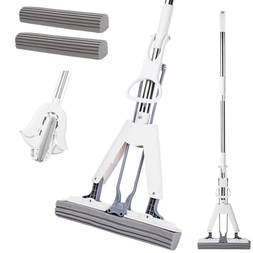 bangminda Skum-mopp med 2 superabsorberande skumhuvuden, absorberande PVA-skum med teleskopiskt handtag i rostfritt stål, golvmopp för kök och badrum