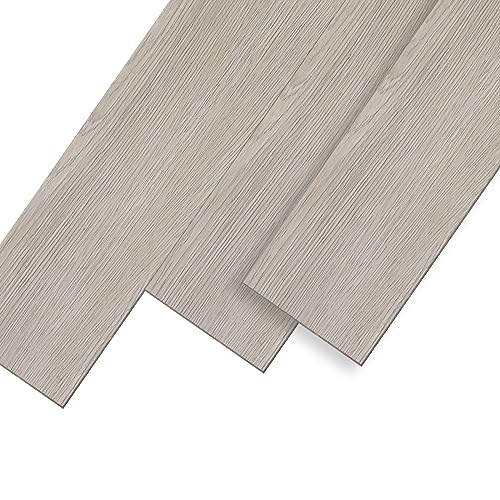 UISEBRT PVC-golvbeläggning, självhäftande kakelplattor, vinylgolv med träutseende, 91,44 x 15,24 x 0,2 cm, 36 stycken för cirka 5 m², dekorativa golvplattor för kök, vardagsrum och balkong (beigegrå)