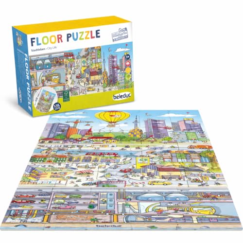 Beleduc Golvpussel stadsliv XL – 45 delar – stort barnpussel från 3 år – Stad och trafikinlärning pussel – 92 x 92 cm – 3 pussel blir 1 XL pussel – imma bild