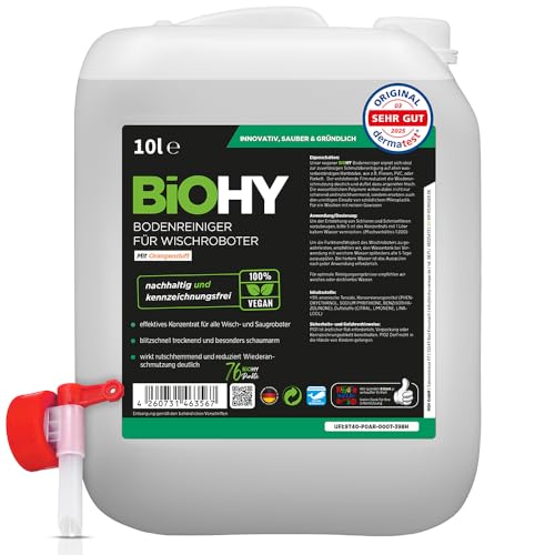 BiOHY Golvrengöringsmedel med apelsindoft för torkrobotar (behållare på 10 liter), plus utloppskran, rengöringsmedel för alla torkrobotar, lite skum och inga ränder, drygt 1:200-koncentrat