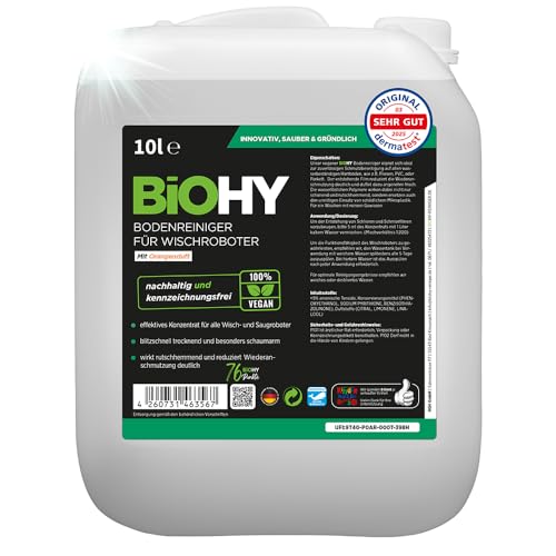 BiOHY Robot för avtorknings rengöringsmedel (10l burk) | Golvrengöringsmedel för alla trägolv som parkett & laminat | koncentrat med en fräsch doft streckfri glans | vegan (Wischroboter Holz)