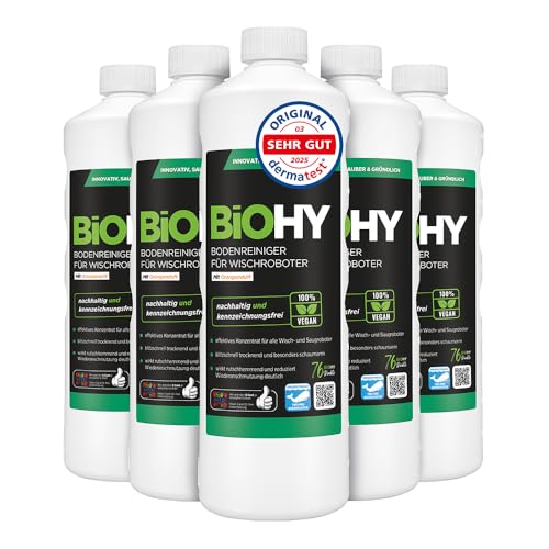 BiOHY Golvrengöringsmedel med vårdoft för alla robotmoppar, skummar endast lite och ger inga ränder, varaktigt, 1:200 koncentrat för alla golv, 6 x 1 liter
