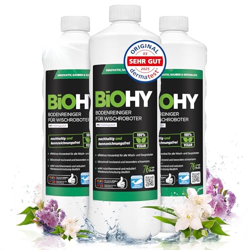 BiOHY Golvrengöringsmedel för mopprobotar med fräsch vårdoft (3 x 1l flaska) | Rengöringsmedel koncentrat för alla mopprobotar | Skumfritt & Streckfritt | Hållbart 1:200 koncentrat (Wischroboter