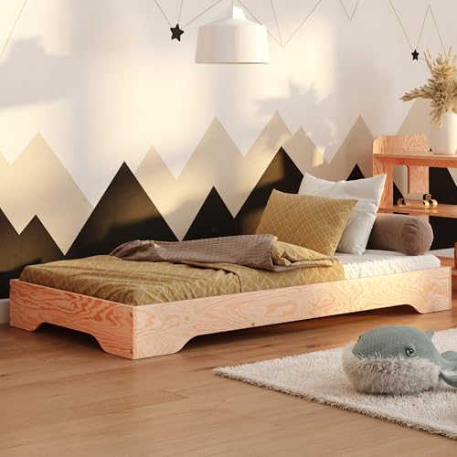 HomeForDreams Golvsäng för barns H4D-25: Montessori-inspirerad sängram för att främja oberoende hos barns (naturligt trä, 200 x 120 cm)
