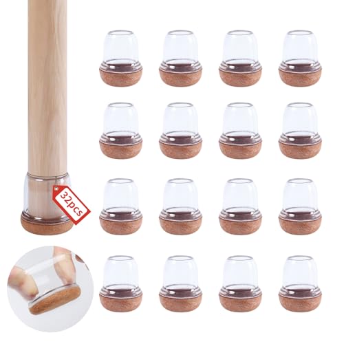 Ezprotekt Möbler uppgraderade genomskinliga silikon stolben golvskydd, 32P silikon stolbenskydd med inslagen filt, stolbenskydd smidig rörlig stol fotskydd, inga repor (rund, 2,5 cm)