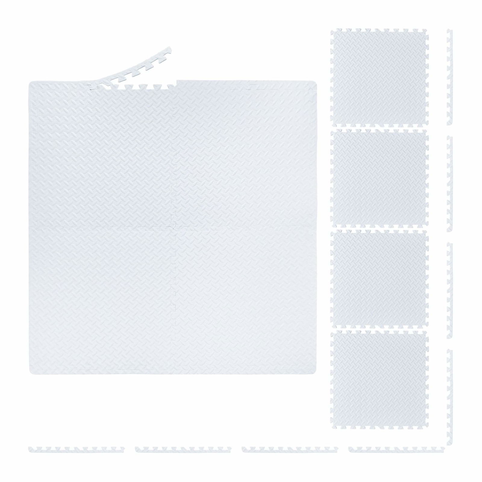 Relaxdays Golvskyddsmatta, 60 x 60 cm, 8 skyddsmattor med kant, EVA, 3 m² yta, underlag för träningsutrustning, vit