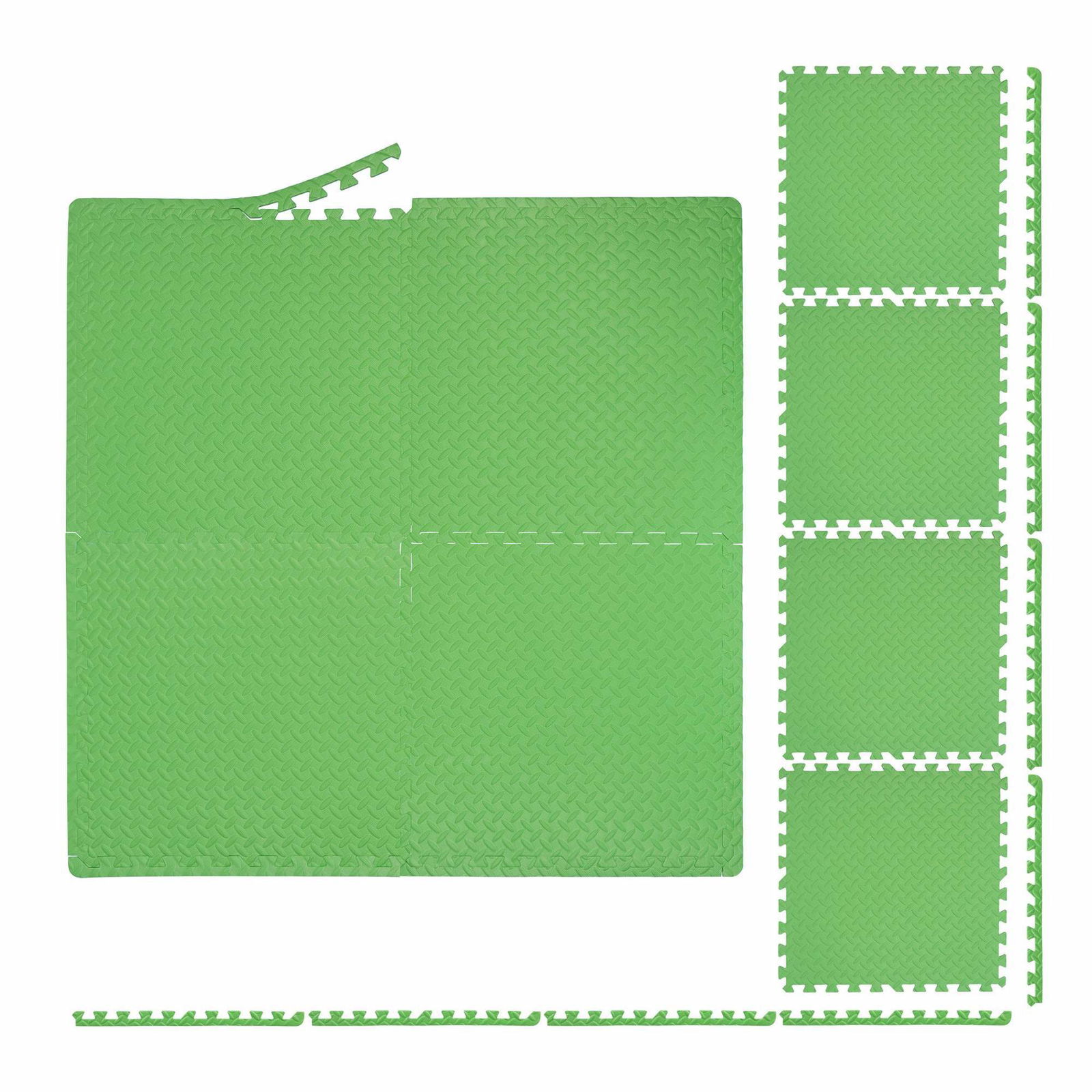 Relaxdays Golvskyddsmatta med motiv, 60 x 60 cm, 8 pusselmattor med kant, EVA, 3 m² yta, barn, pool och fitness, grön