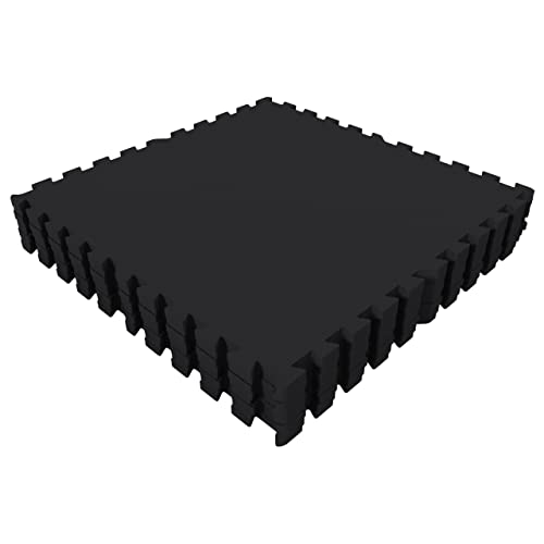 Relaxdays 48x Golvskyddsmatta Dämpande kakel svart 60 x 60 cm, 3m² set om 8, 1 cm tjock, svart